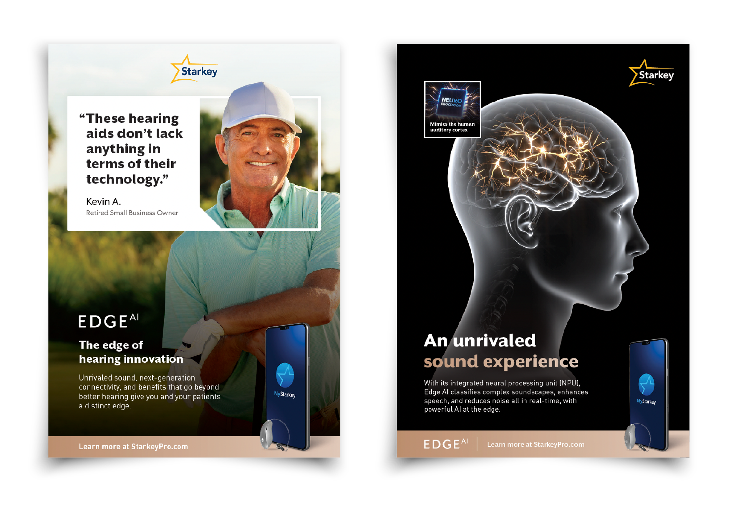 We found 5 hearing aid wearers around the US, fit them with new product, and asked them to share their hearing story what better hearing meant to them. We then used their voices and likeness as our hero for the campaign. We produced a video for each wearer along with an extensive image library. Pull quotes were taken from on camera interviews and used in print pieces.